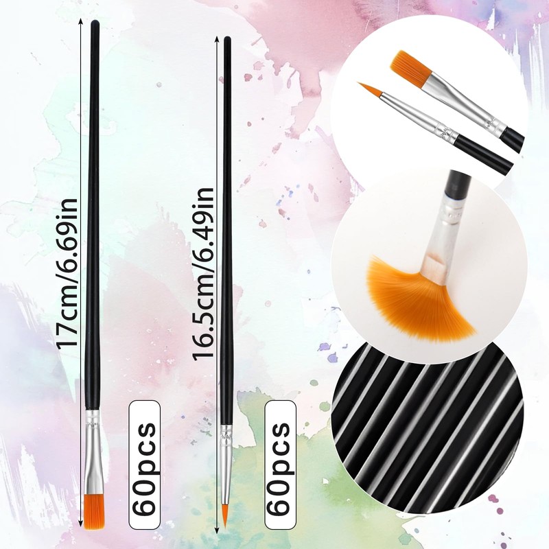 - Package contents: the school brush set contains 120 brushes, including 60 round brushes with a length of 16.5 cm and 60 flat brushes with a length of 17 cm, so they cover your daily needs and are versatile.
