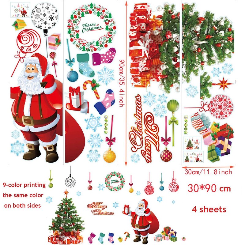 - đ€¶ ăPerfect Decorative Christmas Adhesiveă 90 * 30cm * 4 pieces, just apply these stickers to windows, doors, walls, tables, mirrors, tiles, refrigerators, furniture, laptop shells, etc. It is very suitable for families, bars, stores, clothing stores, offices, restaurants, supermarkets, shop windows, etc.