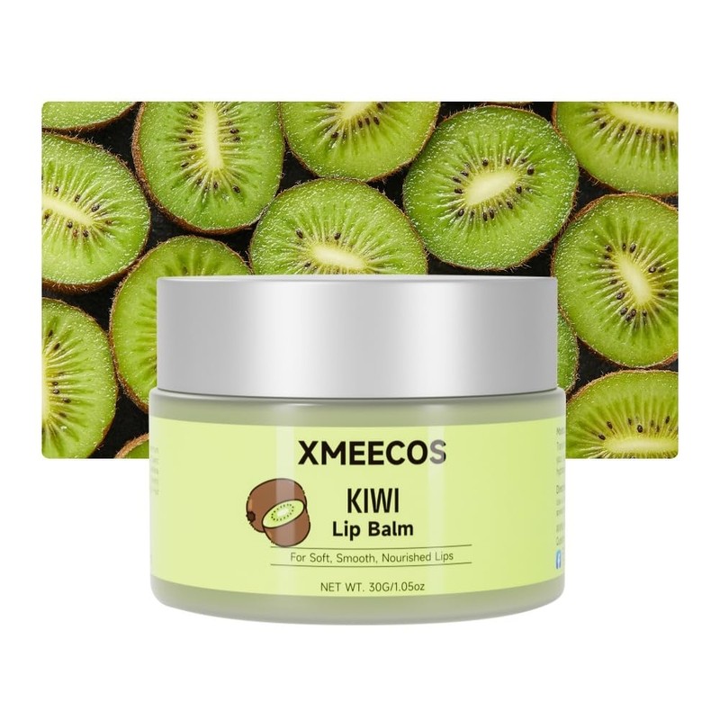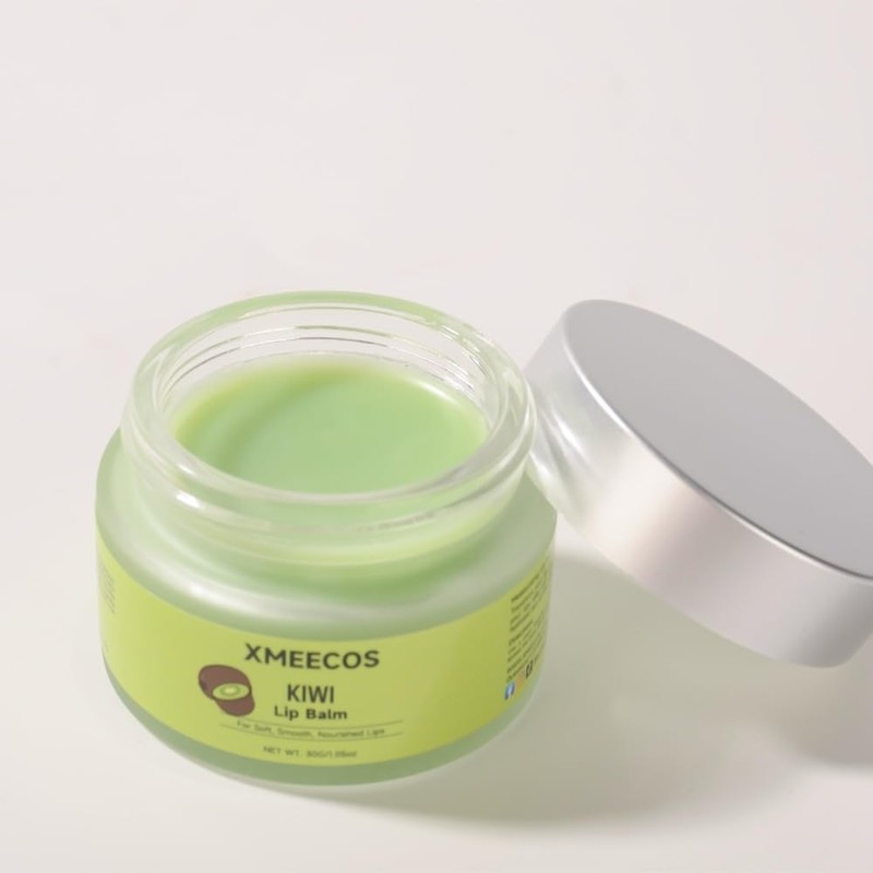 XMEECOS Beeswax lip balm with rose and jasmine, kiwi, strawberry, peach, cherry extract bee friendly 100% Natural for men and women, cruelty free moisturizing (30 Grams, Kiwi)
