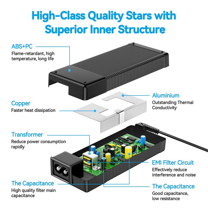 - AC adapter charger has passed the FCC test with certificates. Made of cutting-edge materials and featuring with V-0 grade flame retardant, OVP, OCP, SCP Protection,it would be much secure than others.