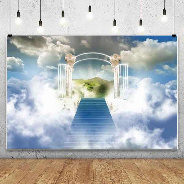 XMJJKUF Heaven Backdrops 10x8ft Paradise Gate Sky Stairway to Heaven Photography Background for Heaven Sent Baby Shower Baptism Banner Easter Photo Backdrop Church Photo Banner