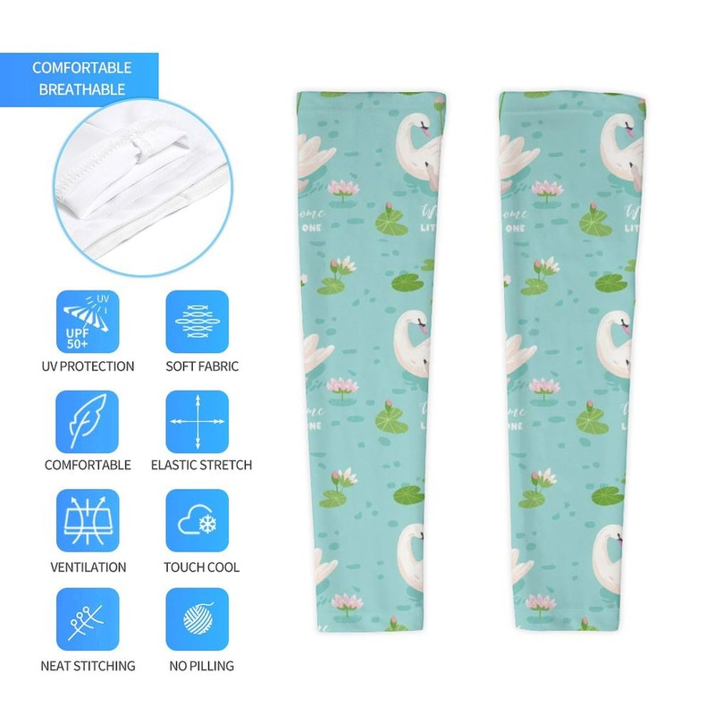 Xmkltbz 1 Pair Cooling Arm Sleeves, Unisex Warmer Spandex Sports Cover Uv Sun Protection for Cycling Golf Running L Print Swan Parent with Water Lily Flowers Green Leaves Pond Seamless