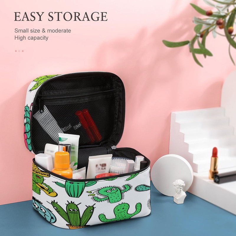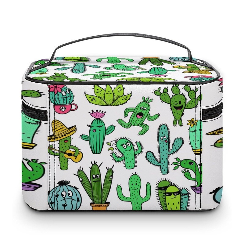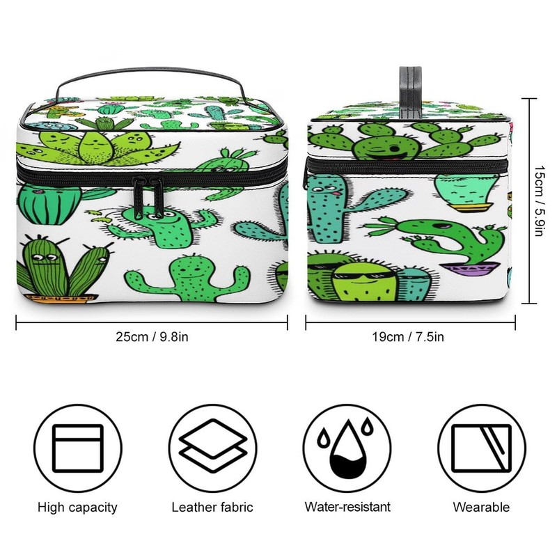 Xmkltbz Large Women Wash Bag, Cosmetic Organizer Train Toiletry Storage Case Holder Zipper Makeup Bag Pouch 9.8x7.5x5.9 in Print Green Turquoise Funny Cactus and Succulent Characters Seamless