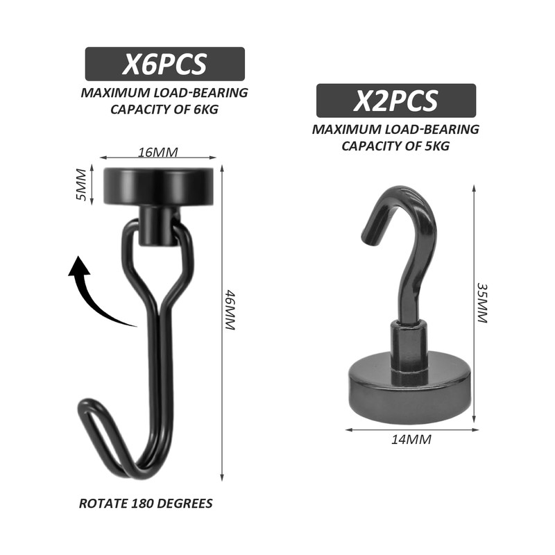 - [Product Contents] You Will Receive 6 Pieces Black Rotating Magnetic Hooks Measuring 1.6 X 3.6 Cm And 2 Pieces Black Magnetic Hooks Measuring 3.5 X 1.4 Cm, Which Are Suitable For Hanging Various Items.