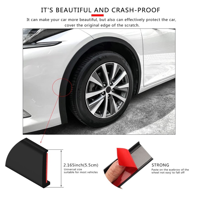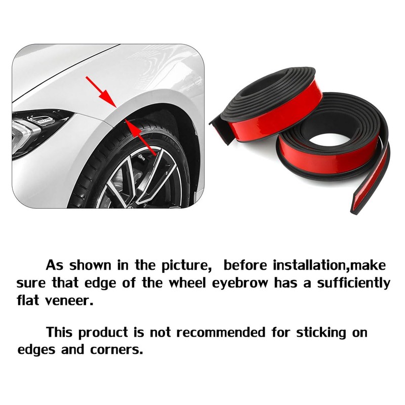 - 【Easy Installation】The product has good softness and plasticity. It does not require any tools. Remove the red protective film and paste it directly. It can be bent and pasted according to the radian of the wheel arch, and finally cut with scissors. After installation, press firmly on each position to make it more secure.