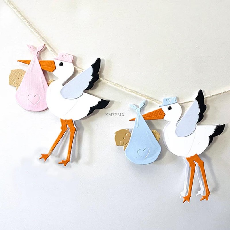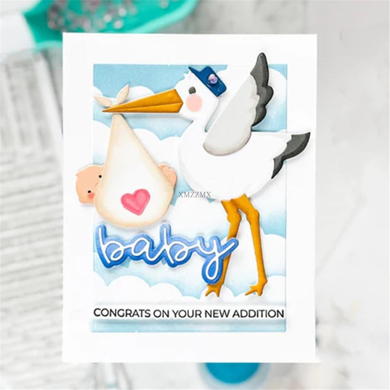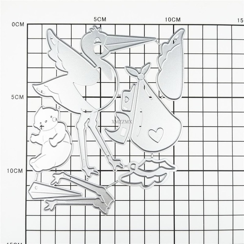 XMZZMX Patchwork Arrow Stork Bird and Baby Metal Cutting Dies for Card Making, Paper Embossing Die Cuts Kit Templates Supplies, Photo Frame Album DIY Scrapbooking Stencils Sets
