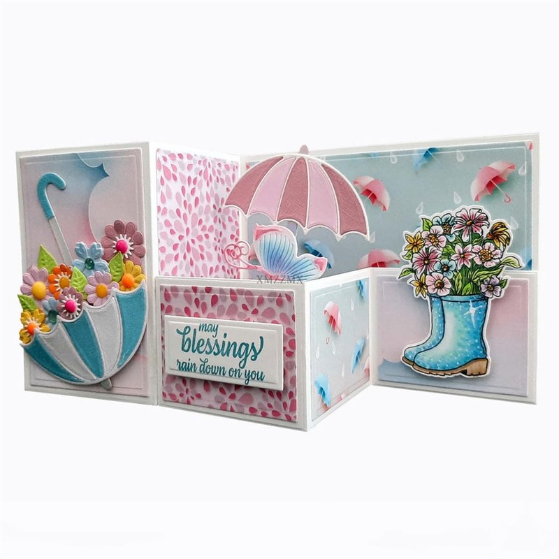 XMZZMX Patchwork Umbrella Metal Cutting Dies for Card Making, Paper Embossing Die Cuts Kit Templates Supplies, Photo Frame Album DIY Scrapbooking Stencils Sets