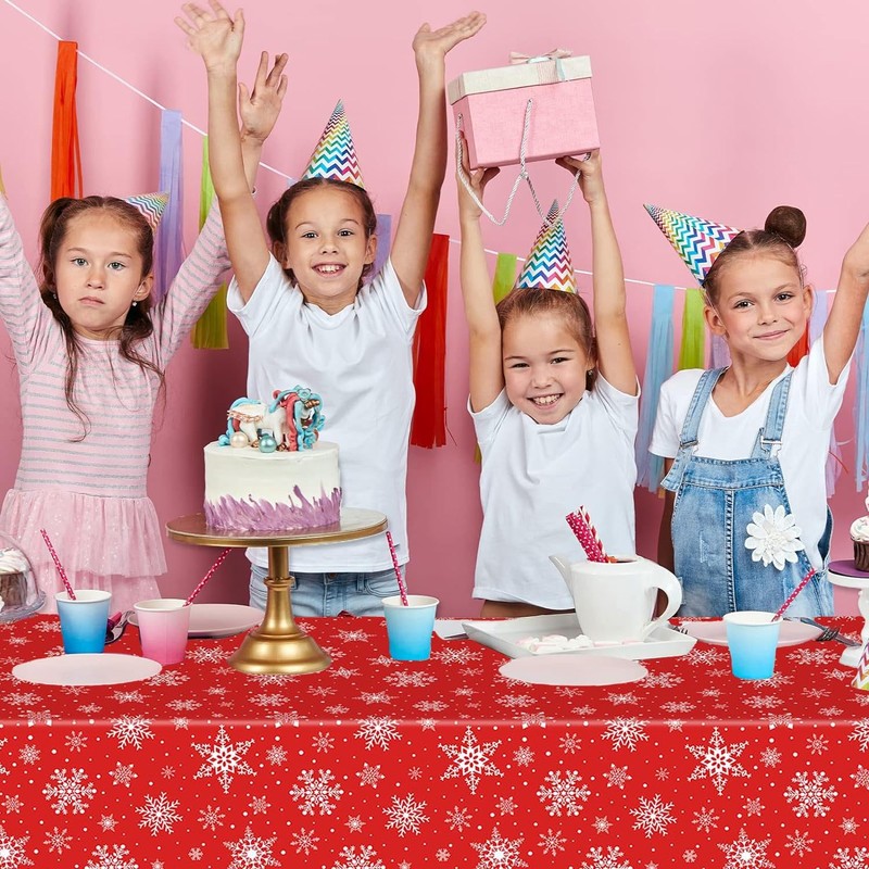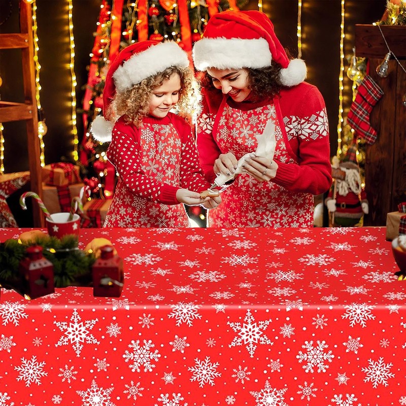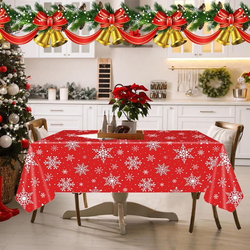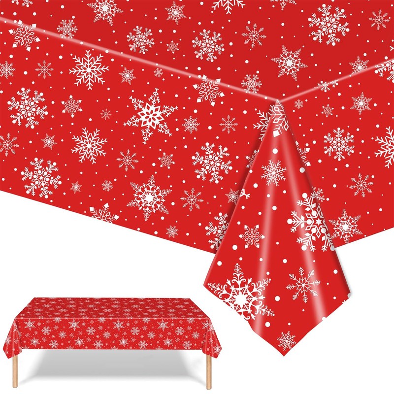 - ❄【Christmas Theme Design】The christmas snowflake table cloth features a red color adorned with various snowflakes in different shapes to create a sense of depth. This exquisite combination is perfect for Christmas and winter gatherings and party.
