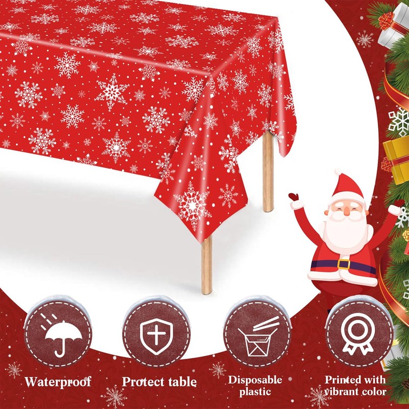 - ❄【Material】Our Christmas table covers are made of high-quality PE plastic material, not easy to break or fade, tear and wear resistant.