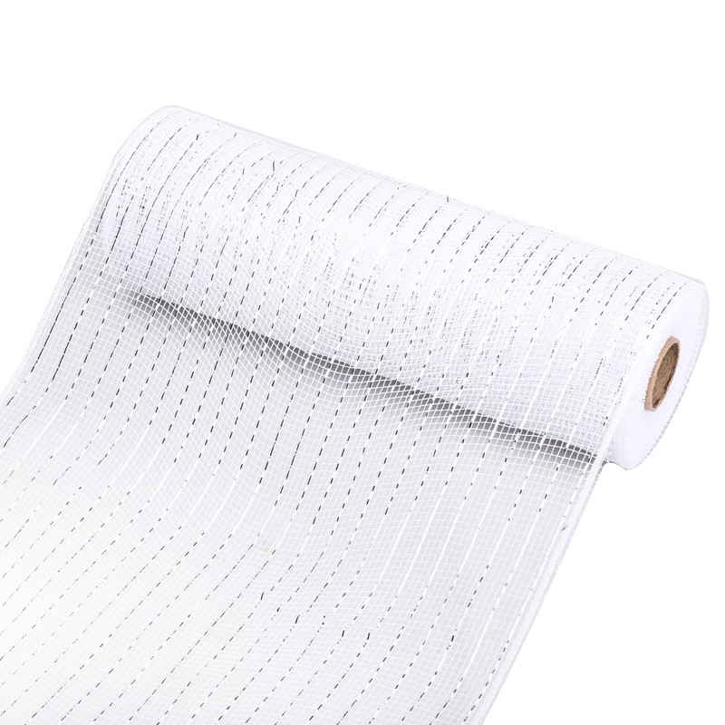 XNHIU Poly Mesh Ribbon 10 Inches x 10 Yards Metallic Foil Rolls for Wreaths DIY Crafts Wrapping Swags Home Decoration (White)