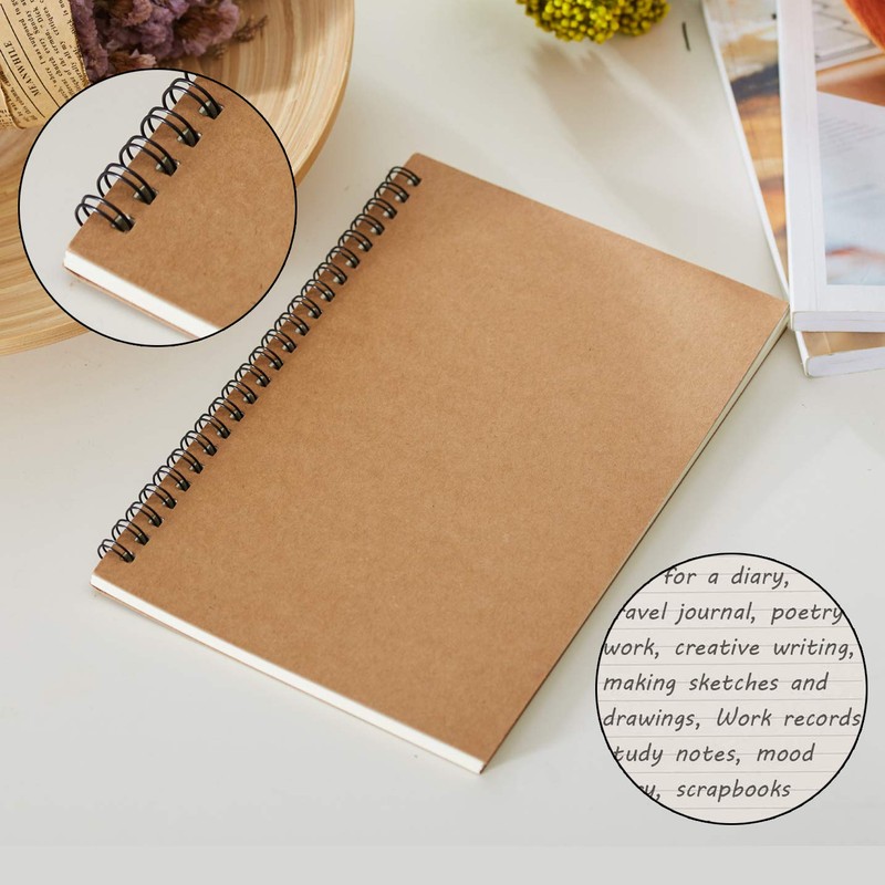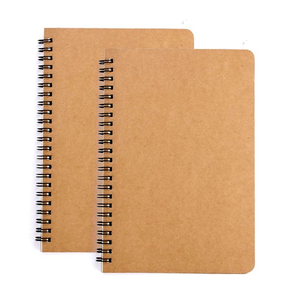 XNJIHWA 2 Packs A5 Spiral Paper Notebook Lined Spiral Kraft Cover Notebooks P...