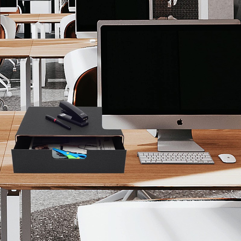 XNONE PU Leather Stackable Organizer Drawer,Executive Office Supplies Desktop Filing A4 File Cabinet/Holder for Jewelry/Bill/Paper/Documents/Makeup Home Decor Stationery Storage Box,Black