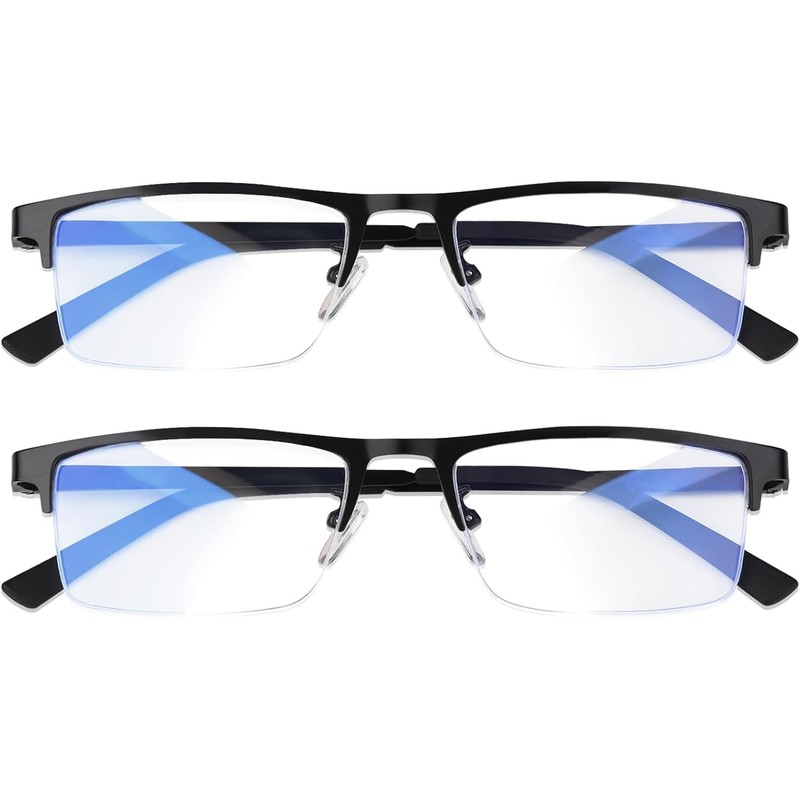 Xnourney Blaulichtblockierbrille, Leichtmetall, halber Rahmen, Computer Lesen/Spielen/TV/Telefon-Brillen, UV-Filter/Computer Blendung mit Federscharnier (2 Stück schwarz)