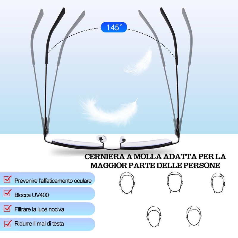 - 【Anti-Blue Light】Anti-Blue Light, mit UV400-Schutz. Blendfrei und kann mehr als 98% schädliches blaues Licht verhindern. Sie können die Ermüdung und Beschwerden der Augen reduzieren, die durch langes Lesen verursacht werden, während Sie PC, TV, PHONE, LAPTOP oder Arbeiten in Leuchtstofflampen verwenden.