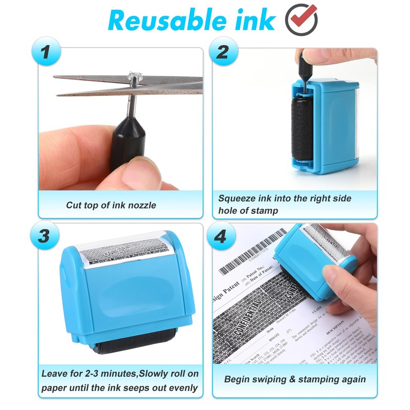 - 【Quick Dry Ink】 The confidential roller stamp use the high quality ink that can resist water and oil, The ink not only dries quickly, but also do not fade easily, Note: This safety roll stamp is suitable for most ordinary paper, envelopes and packages, DOESN'T WORK on glossy surfaces. because its oily ink is easy to wipe off!