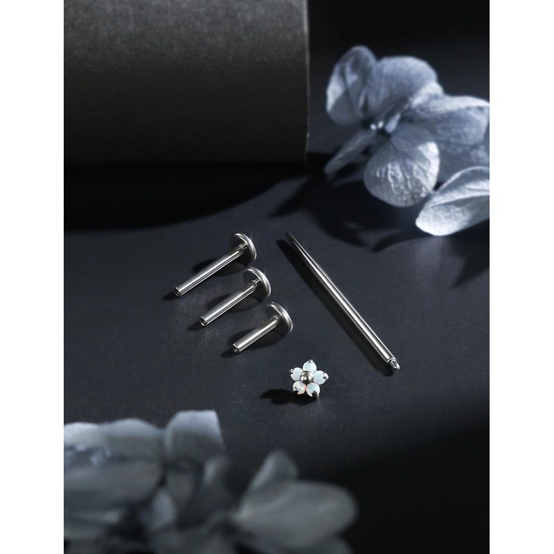 Xnsjeyy 16G G23 Titanium Tragus Conch Helix Piercing Jewelry Internally Threaded Flat Back Cartilage Earrings Forward Helix Earrings Studs Medusa Labret Piercing Jewelry for Women Men Flower Opal
