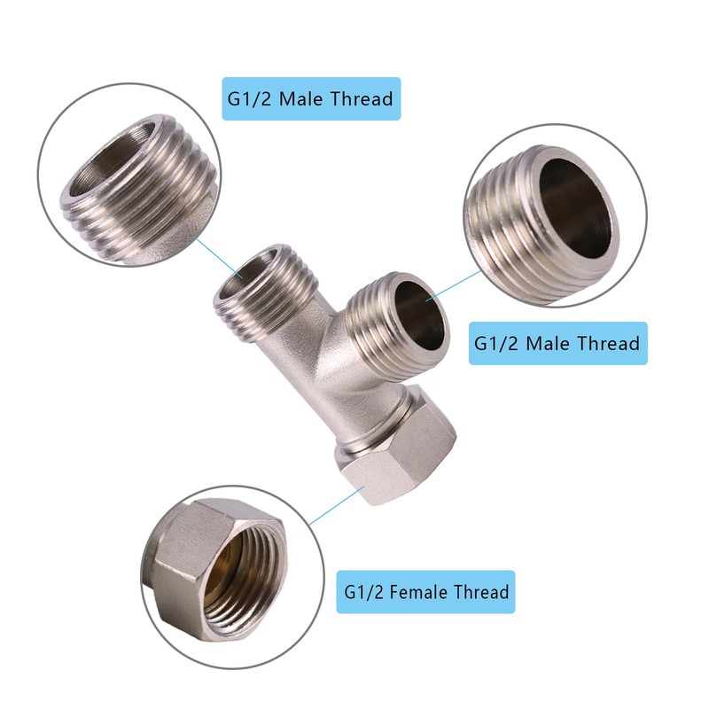 - T Diverter Valve Thread Size: 1/2" Male x 1/2" Male x 1/2" Female with a 19.8mm thread diameter. Please compare the dimensions carefully before purchasing