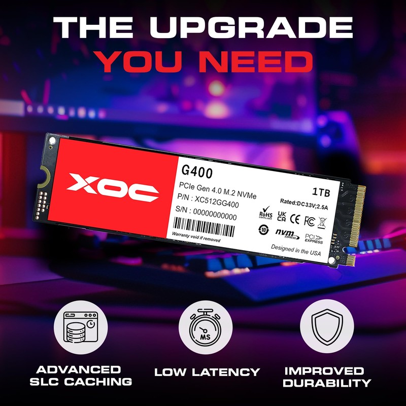 - Cutting-Edge PCIe Gen 4.0 Interface: Built to comply with NVMe 1.4 standards, the XOC G400 doubles the bandwidth of PCIe 3.0 SSDs. It provides lightning-fast performance, reduces latency, and eliminates bottlenecks, ensuring smooth operation for demanding applications and enhancing overall productivity.