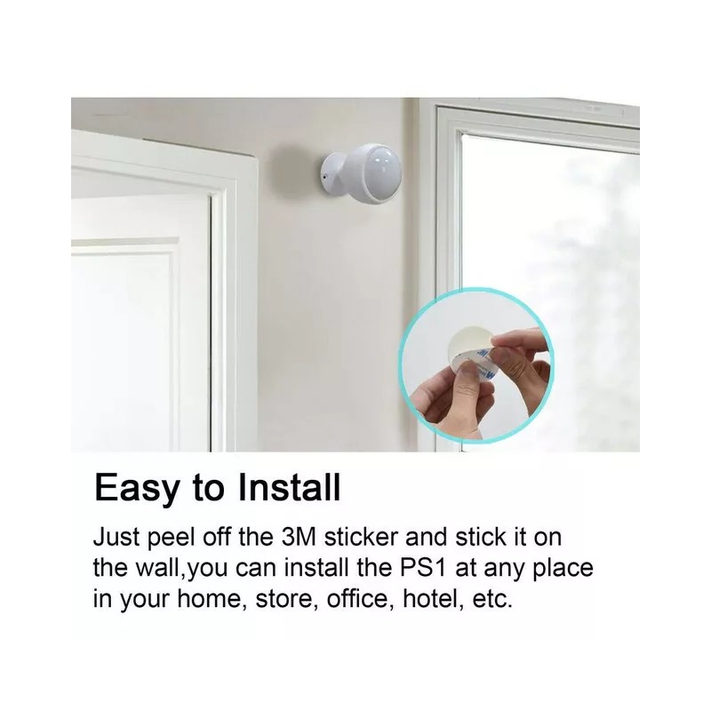 Larger Detection AreaPS1 catches motion fast with the 110° wide angle. Keep lit for 30 secs and then shut off until the detector is triggered again. | Avoid Property LostPS1 pushes alert notifications and send message to you if there is unexpected motion. Do not worry about property lost. | Recommended Set Up PlacesPerfect ideal for Kitchen, Garage, Doorway, Living-room, Backyard, Front-door, Patio, and business places. |