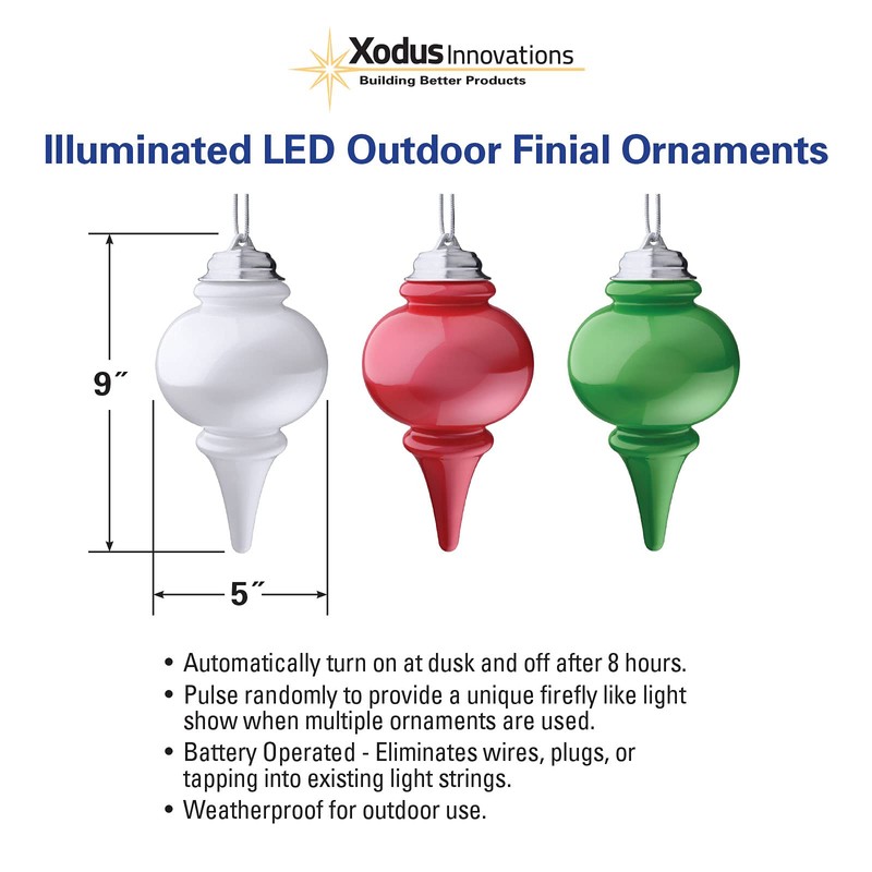 Xodus Innovations WP680 Battery Powered Hanging Decorative Outdoor Pulsing 8" Finial Light with Sensor Turns-On at Dark, Red