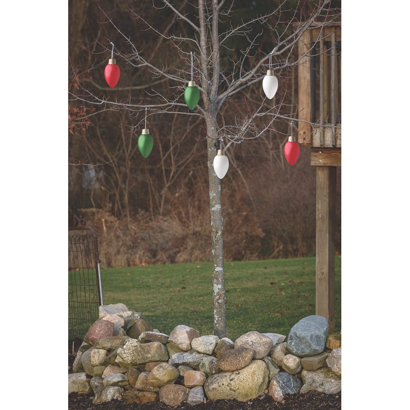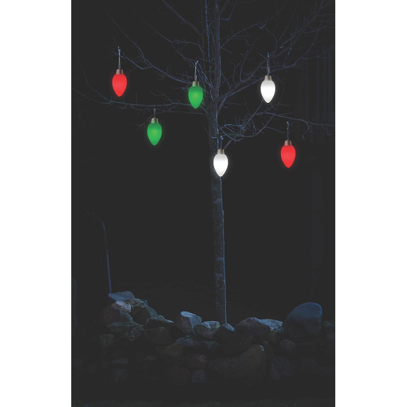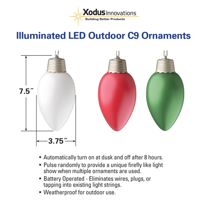 - This attractive 8 inch battery operated outdoor C-9 bulb shaped ornament turns into a pulsing light show at night