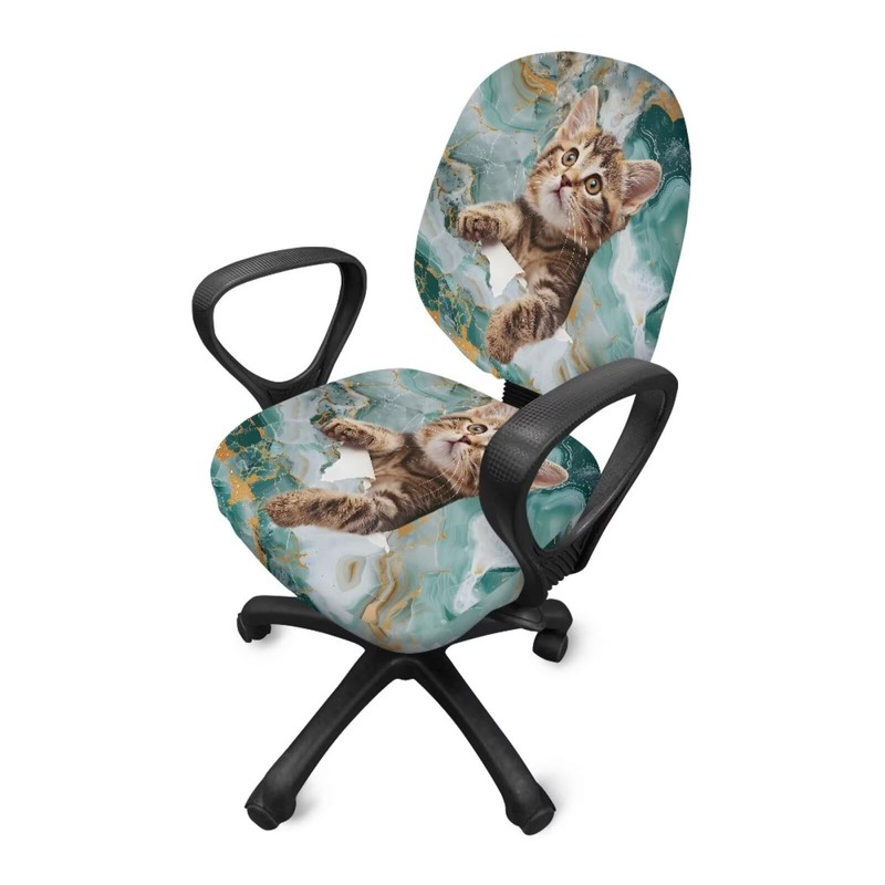 Xoenoiee Cat and Marble Print Office Chair Covers Stretchable Slipcover 2 Pieces Seat Cover with Backrest Cover Protective Decorative Computer Seat Cover