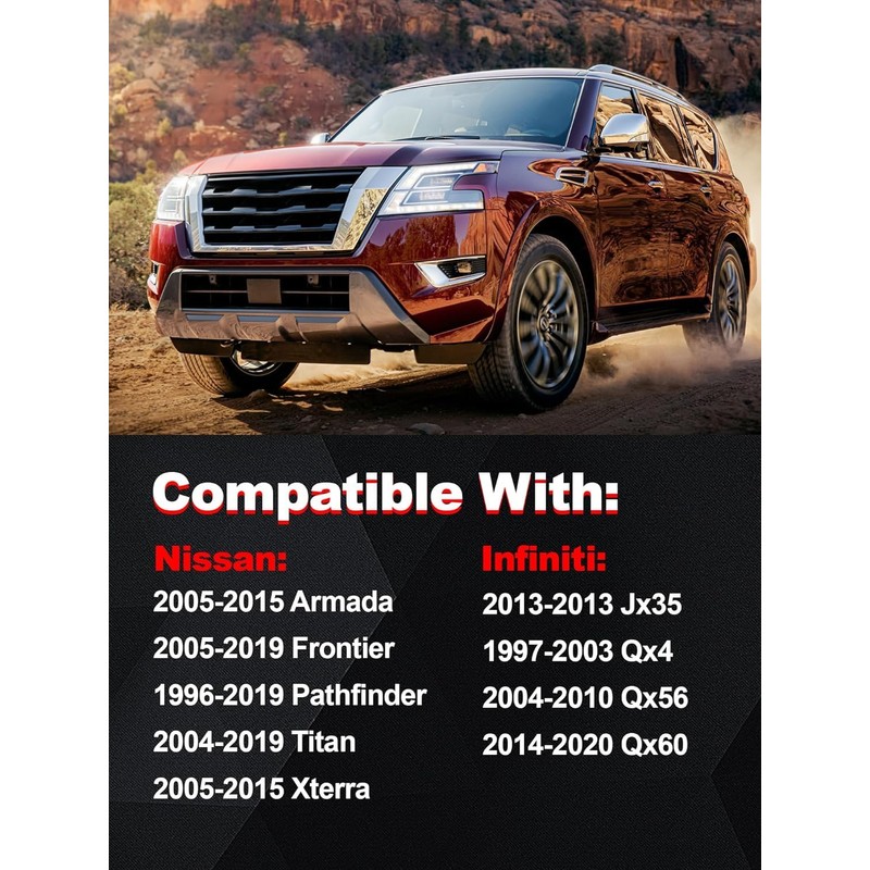 • The Spare Tire Tool Kit use to release,lower or raise the spare tire and release the tire.Fit for Armada 2005-2015,fit for Frontier 2005-2018 ,fit for Pathfinder 1996-2018 ,fit for Titan 2004-2019,fit for Xterra 2005-2015,fit for Jx35 2013,fit for Qx4 1997-2003,fit for Qx56 2004-2010,fit for Qx60 2014-2018.