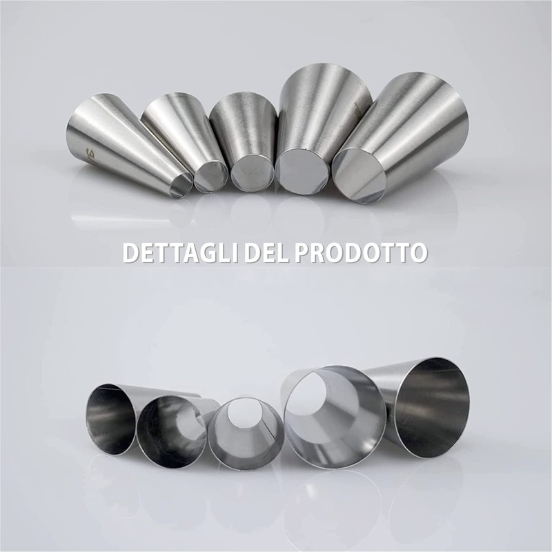 XOPOZON Set of 5 Stainless Steel Round Sleeves for Small, Medium and Large Cakes for Decorative Nozzles, Cupcake Accessories, Compatible with Sleeves