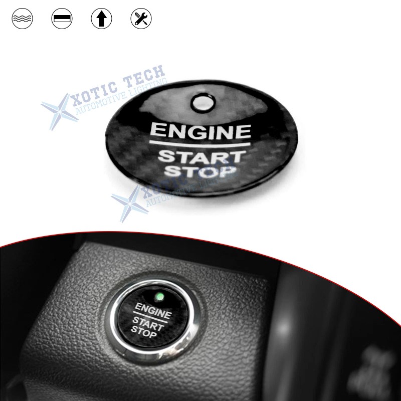 Xotic Tech Black Carbon Fiber Look Ignition Switch Button Decor Trim For Ford F-150 Fusion