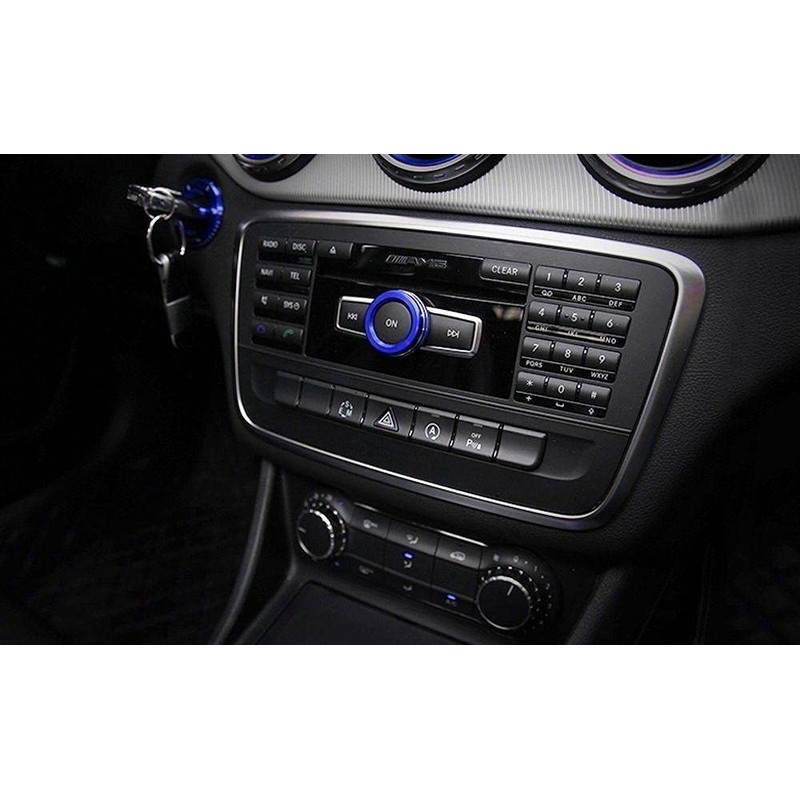 Xotic Tech Blue Alloy Aluminum Stereo Volume Audio Control Knob Switch Button Decoration Ring Cover Trim Compatible with Mercedes A B C E CLA GLA GLK ML GL Class