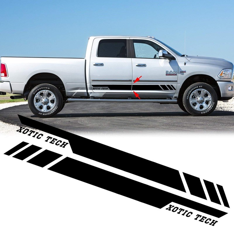 Xotic Tech Body Side Skirt Die-Cut Vinyl Decal Door Stripe Sticker Compatible with Dodge Ram 1500 2500 3500 2009-2017 (Glossy Black)