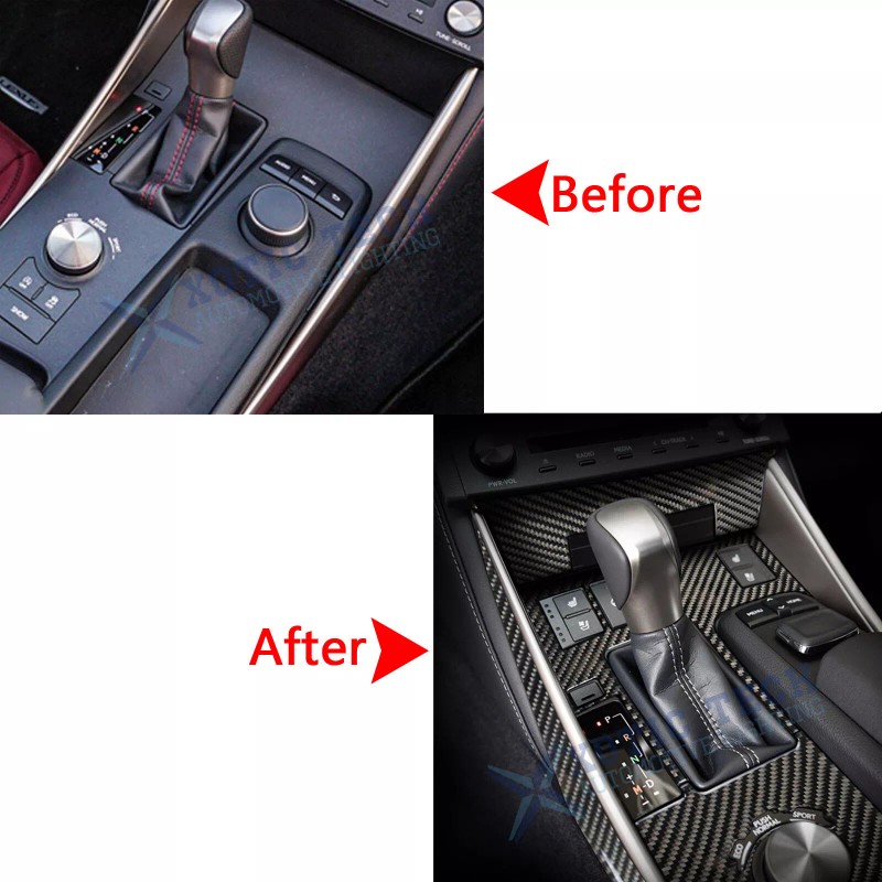 This listing is for 2 pieces of Geniue Carbon Fiber Interior Center Gear Shift Box Panel + Side Cover Trim stickers, specially design for Lexus