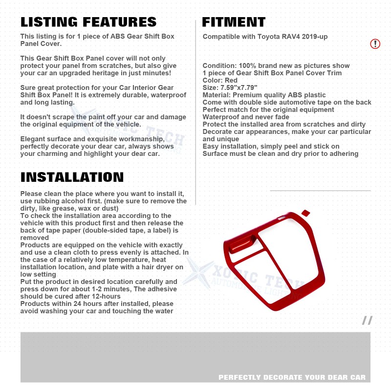 Sure great protection for your Car Interior Gear Shift Box Panel! It is extremely durable, waterproof and long lasting.