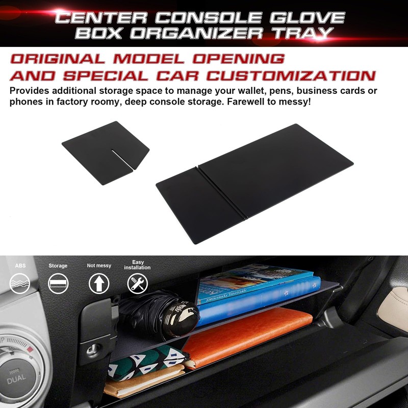 • Expand Storage Space: Not only keep using the original area but also maximize the space of your glove box and armrest box. Four compartments with different sizes, you can put many stuffs such as bottles, books, wallet, lighter, sunglasses, driving licenses etc. It will keep your car in a more organized shape and help you wipe out the mess on your seats, create a neat and clean environment.