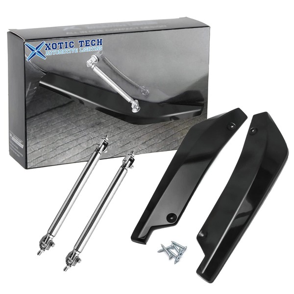 Xotic Tech JDM Universal Rear Bumper Canard Diffuser Splitter Valence Spoiler Fin Lip Trim, Glossy Black with Adjustable 6"-9" Support Rod -Silver