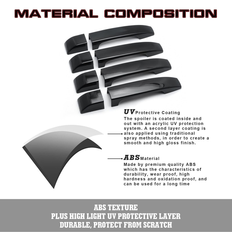 - Our door handle cover made with premium quality ABS material which can last a long use time as well as it can give your vehicle an upgrade texture and customized sporty looks in minutes.
