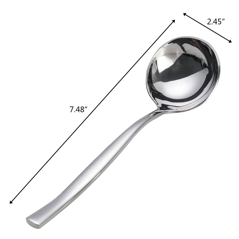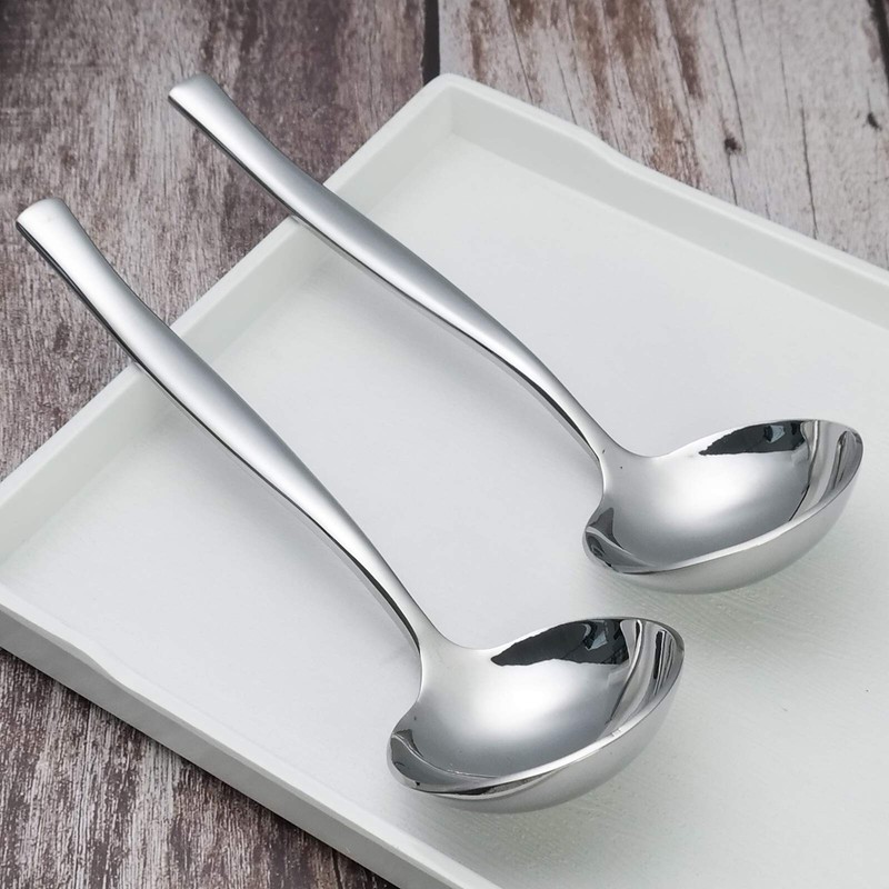 • Diseño de apariencia: el mango largo lo hace seguro cuando se usa en sopa caliente o agua caliente, y la superficie espejada se puede limpiar fácilmente