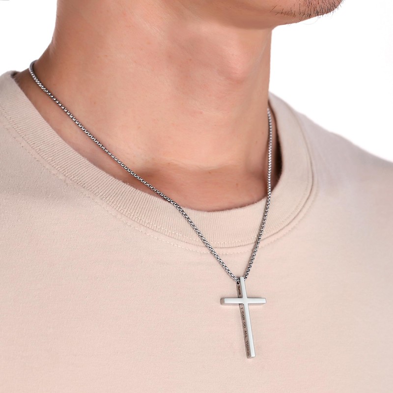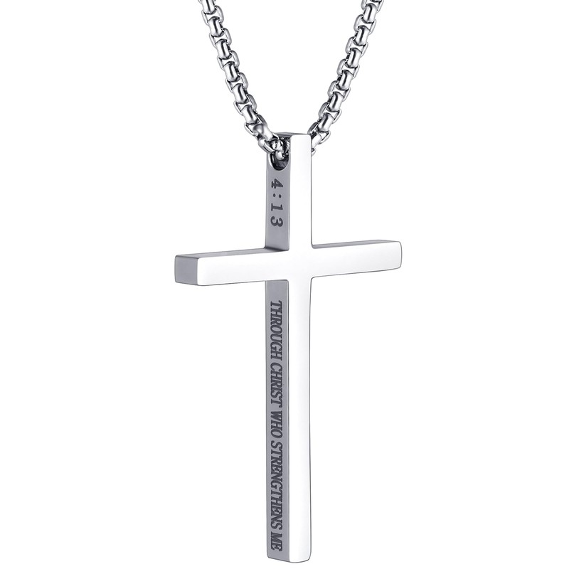 XOYOYZU Cross Necklace for Men Philippians 4:13 Cross Pendant STRENGTH Bible Verse Stainless Steel Necklace