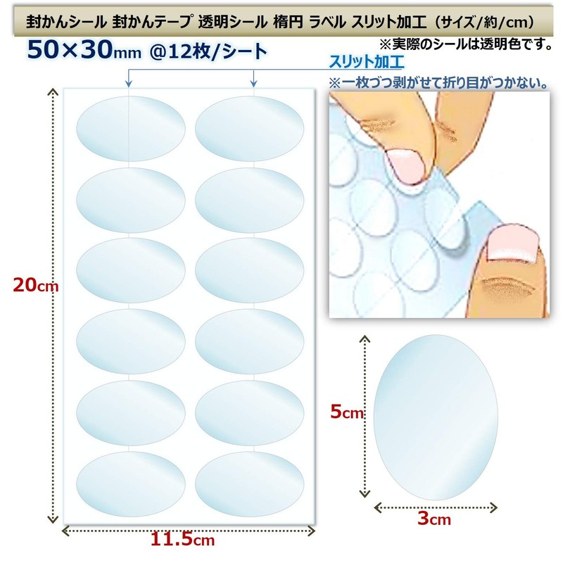 XP Design Seal Oval Clear Transparent Sealing Seal Commercial Seal Label Envelope Letter Slit Processing (Transparent, 2.0 x 1.2 inches (50 x 30 mm), 480 Sheets