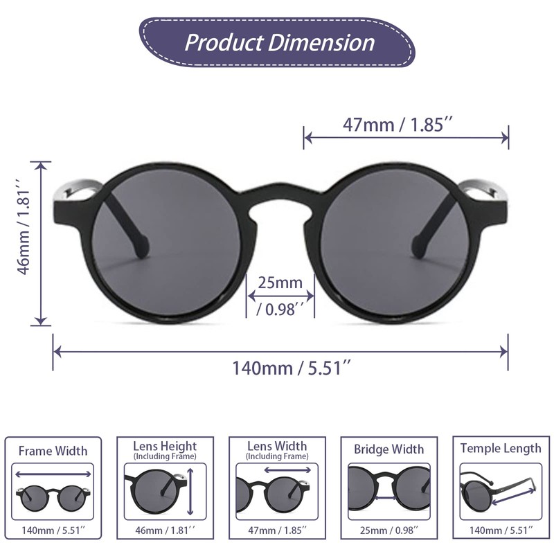 • Style: inspired by the 30s vintage hippy style, now called bohemian, these circle lens glasses are simple plain design yet with some unique color options: brown leopard frame with turqoise green lens, green frame with grey lens, sugar brown frame with bronze lens and the classic black