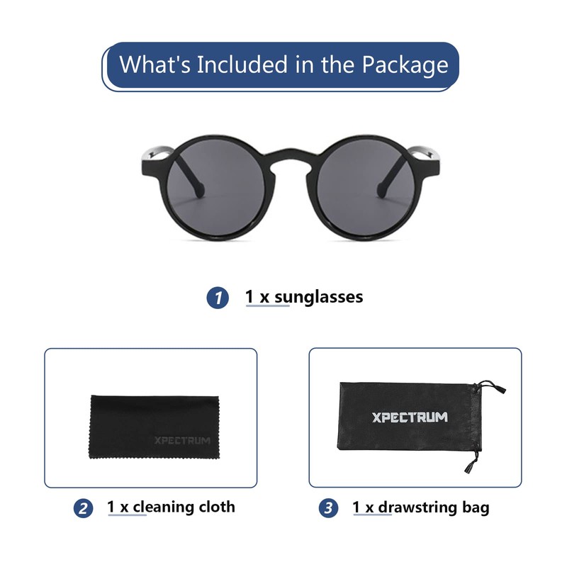Xpectrum Lightweight Unisex Small Round Sunglasses Hippie Circular Plastic Frame Retro Lennon Style Boho Glasses (Black, 47)