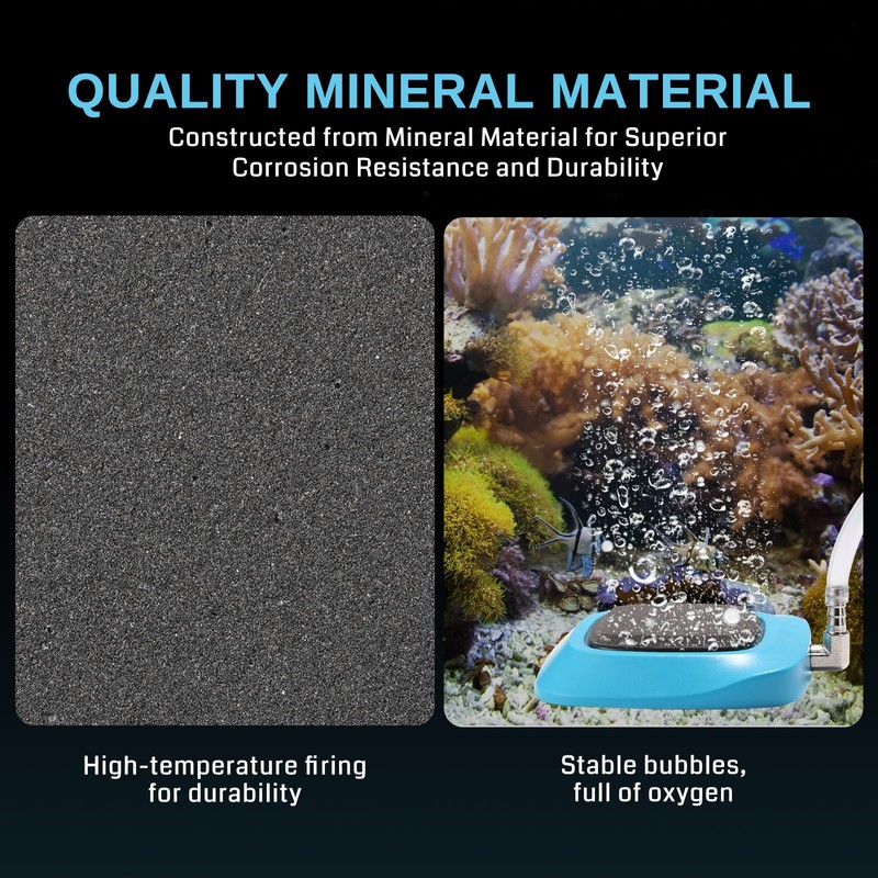 - Nano Pores: Engineered with ultra-fine nanopores to produce a low-pressure, gentle air output that efficiently oxygenates your tank without disturbing fish.