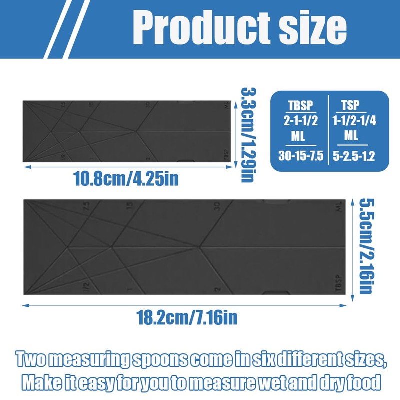 • 6 DIFFERENT SIZES This set of 2 measuring spoons includes 6 different sizes, so you can easily measure wet and dry ingredients.
