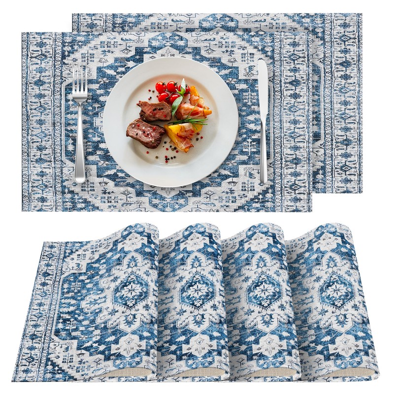 XPHZZL Table Mats Set of 4 Boho Monaco Pattern Decorative Placemats Washable Non-slip 45 x 30cm Heat Resistant for Kitchen Dinning Restaurant 18"X12" (4pc-White Blue)