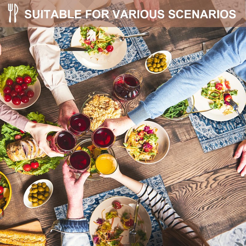 - Multifunctional Usage:The placement mats for dining table are suitable for daily dining indoors or outdoors, including Christmas, Thanksgiving, Easter dinners, birthday parties, cafes, restaurants, picnics, and camping, adding a unique touch of color to gatherings