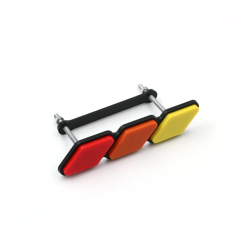- Make your car more Attractive and unique: 3 color-Yellow/Orange/Red badge emblem can be installed on your front grill. This will make your car look cool and stylish while driving! Made with acrylic, Smooth surface, excellent texture.