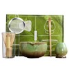 Our 5 piece matcha whisk set comprises a matcha whisk, a matcha spoon, a ceramic matcha bowl, a matcha powder sieve, and a ceramic matcha whisk stand. Matcha whisk set can satisfy most of your matcha beverage production.