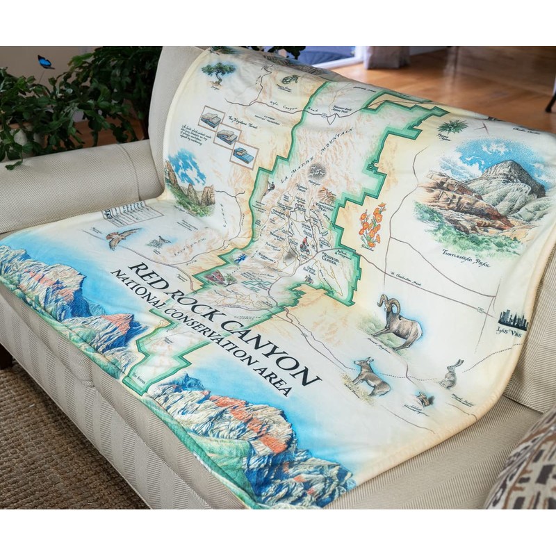 Xplorer Maps Red Rock Canyon National Conservation Area Map Fleece Blanket - Hand-Drawn Original Art - Unique Gift - 58"x 50"