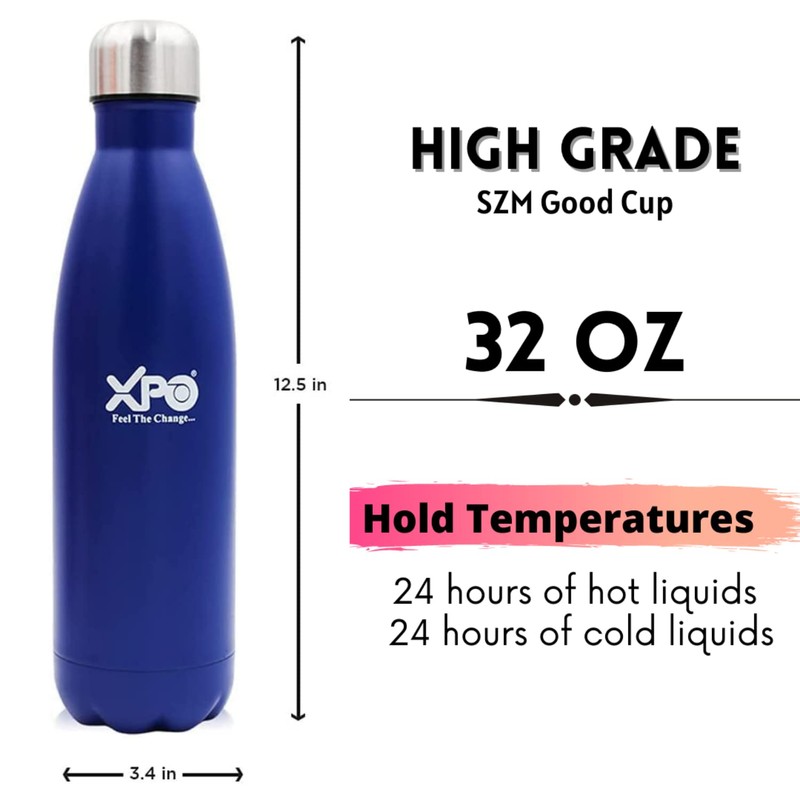 - [INSULATED WATER BOTTLE] XPO stainless steel bottle is made from food-grade steel for long durability. This 16oz stainless Steel water bottle stays hot/cold for 24 hours. There are different colors with different sizes and volumes for storage which is easy to carry out. This insulated water bottle is for daily usage with better quality. The ergonomic design of the bottle, which makes you comfortable while drinking and pouring out.