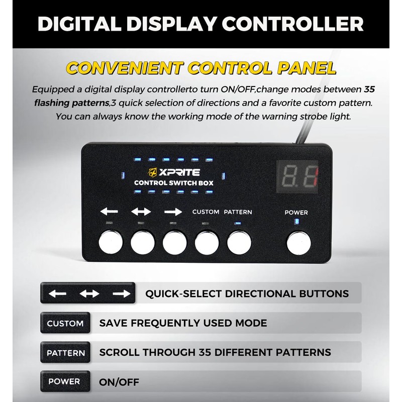- Flash Patterns: The controller equipped with our strobe light bar has six button switches, enabling 35 different flashing modes. Moreover, this strobe light has a memory function, allowing you to save your favorite mode for fast emergency response